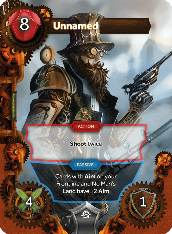 Cards with Aim on your Frontline and No Man's Land have +2 Aim