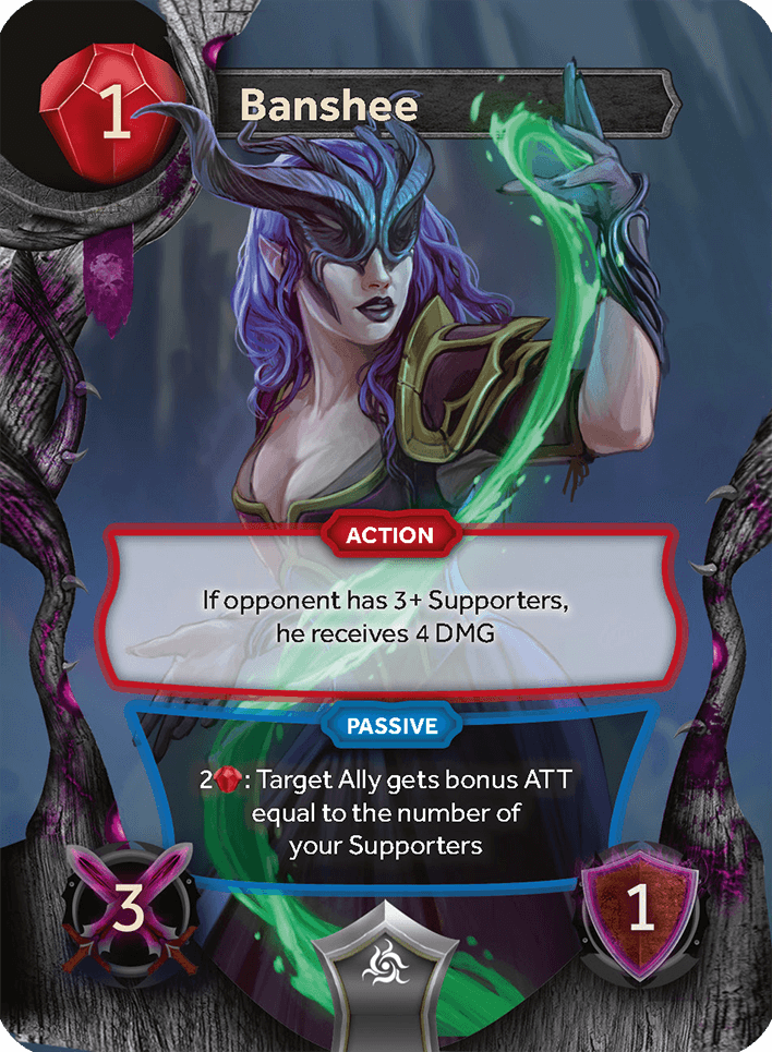 If opponent has 3+ Supporters, he recieives 4 DMG
