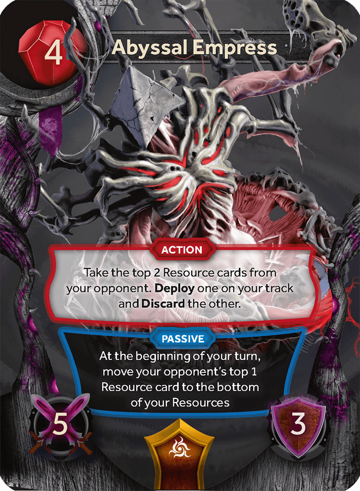 At the beginning of your turn, move your opponent's top 1 Resource card to the bottom of your Resources