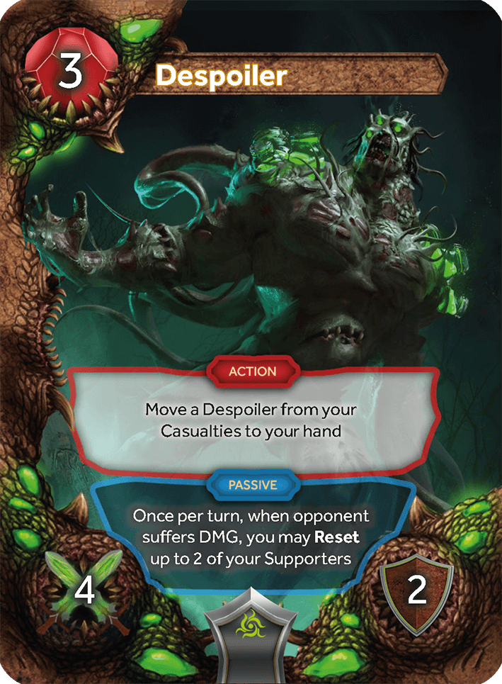 Once per turn, when opponent suffers DMG, you may Reset up to 2 of your Supporters